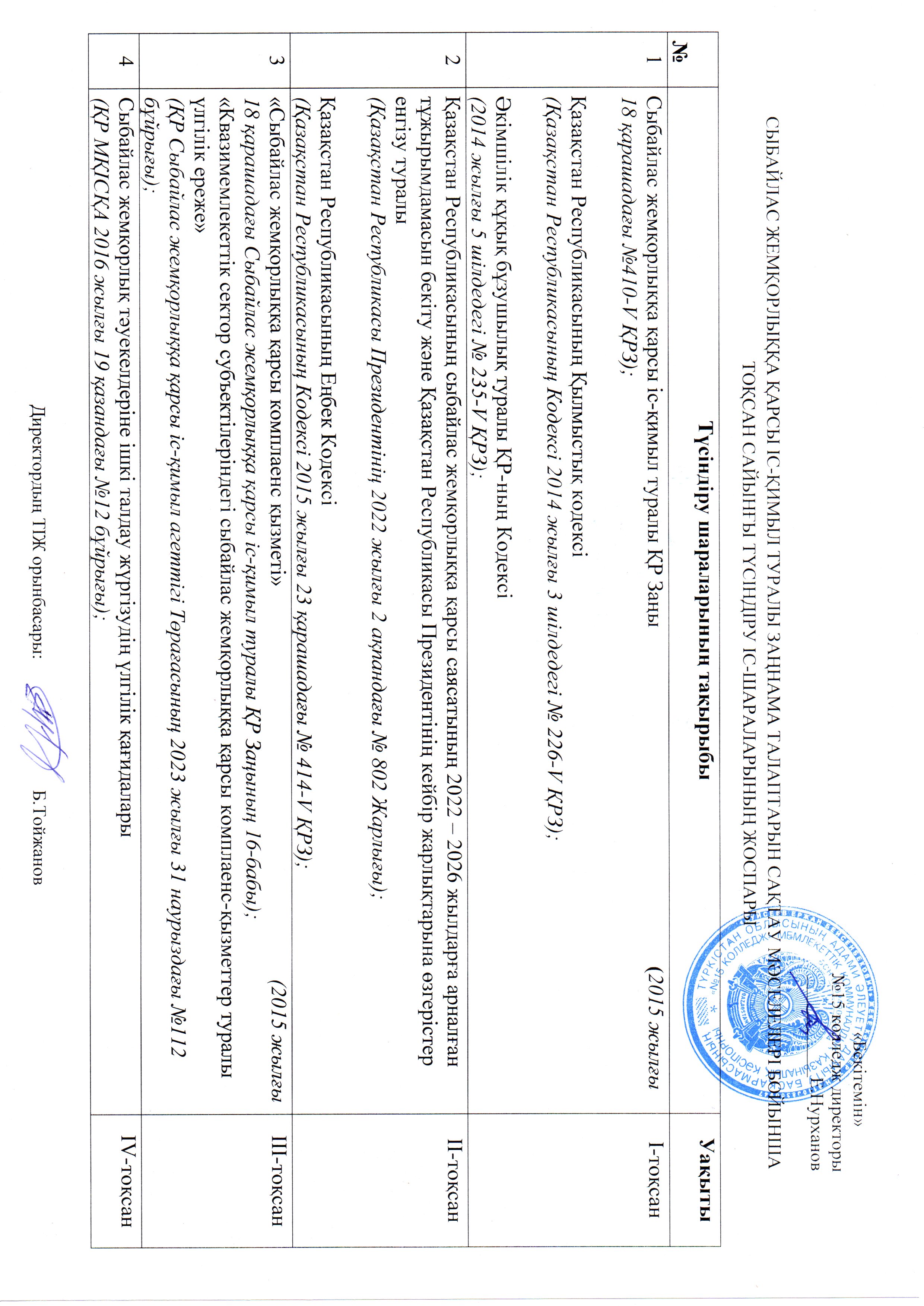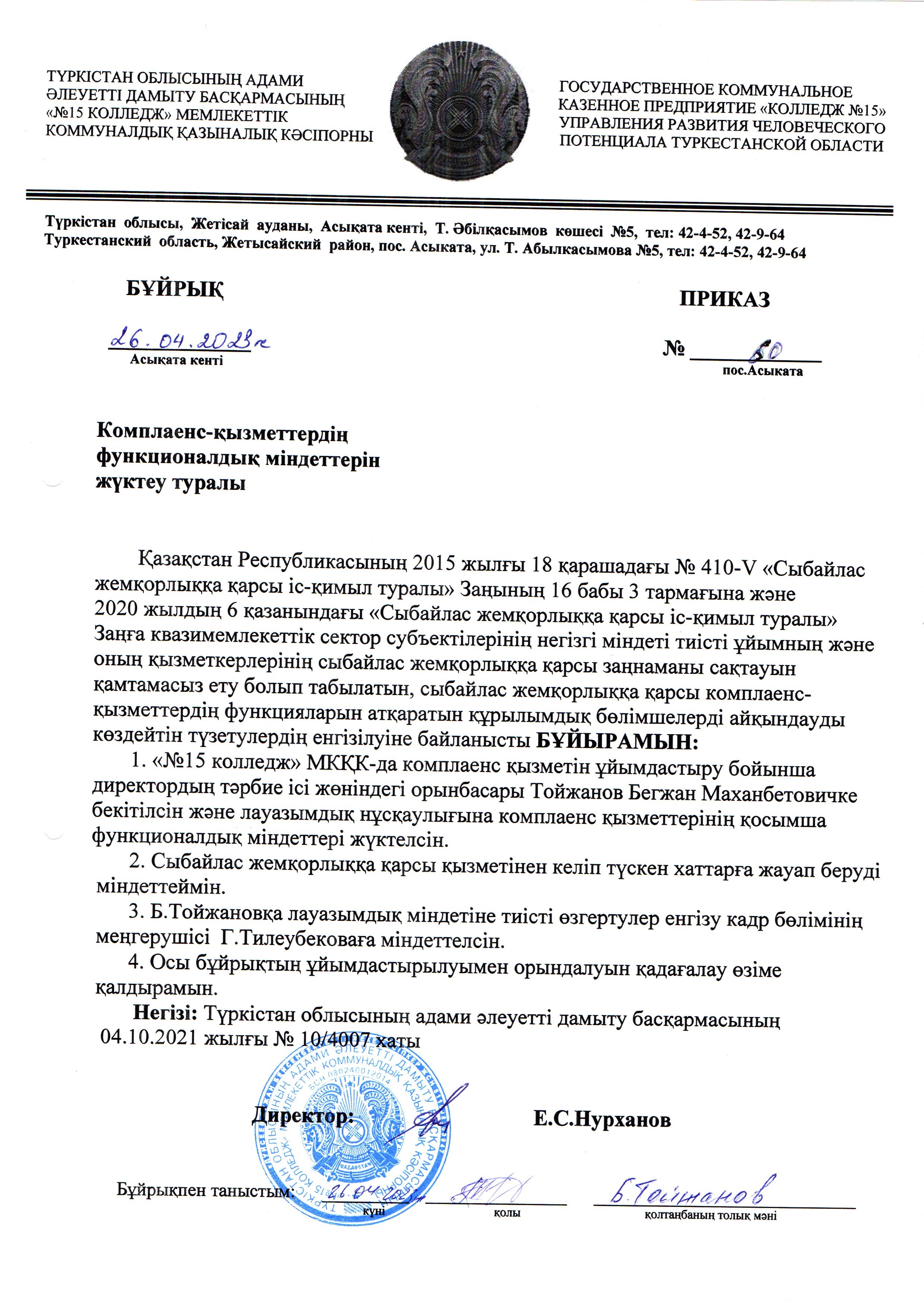 Түркістан облысының адами әлеуетті дамыту басқармасының №15 колледж МКҚК СЫБАЙЛАС ЖЕМҚОРЛЫҚҚА ҚАРСЫ ІС-ҚИМЫЛ НҰСҚАУЛЫҒЫ
