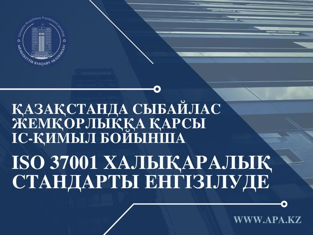 ISO 37001-16 « Сыбайлас жемқорлыққа қарсы менеджмент жүйесі» халықаралық Сыбайлас жемқорлыққа қарсы стандарттары